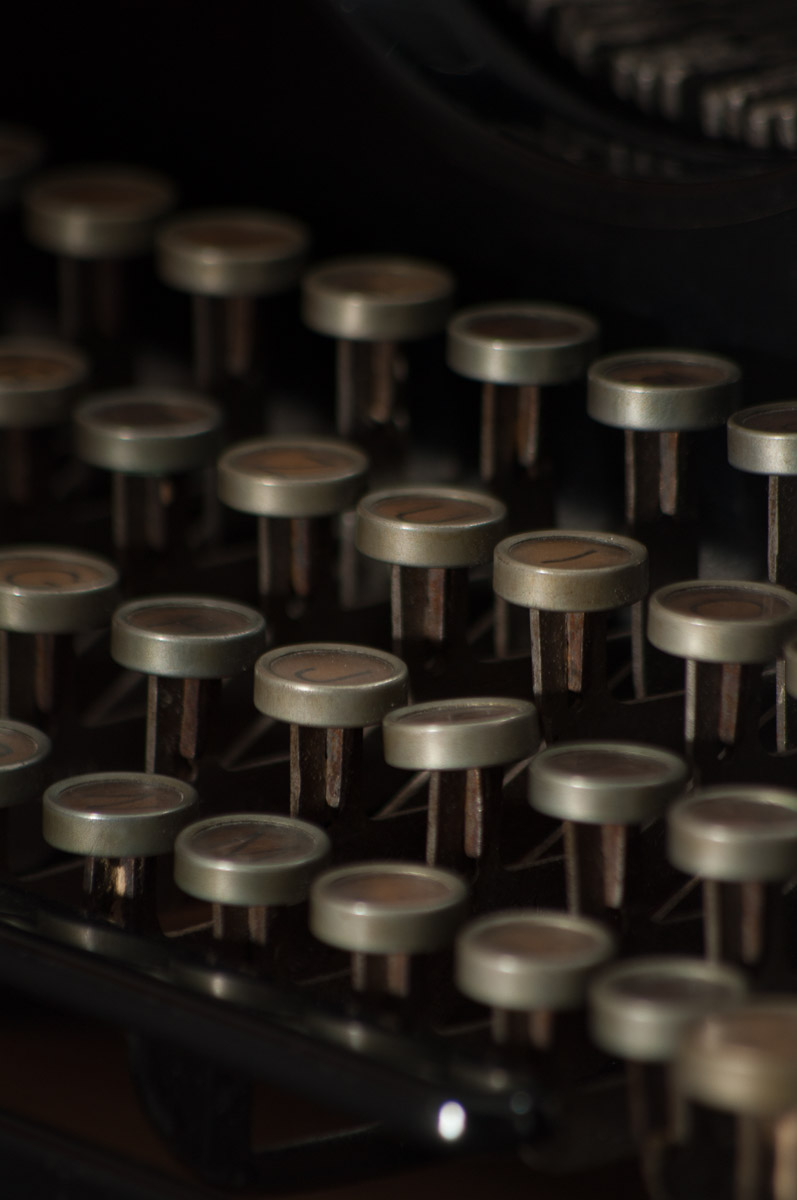 Schreibmaschine mit unterschiedlicher Blitzbeleuchtung und unterschiedlichen Blenden. Bei Gesichtern (bei Lebewesen insgesamt) wirkt partielle Unschärfe durch Offenblende manchmal störend. Bei solchen Motiven wirkt sie eher interessant.