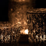 Ohne Blitz. Nur mit dem verfügbaren Kerzenlicht. Um die Schärfeebene etwas auszuweiten Blende 4. Der hohe ISO Wert führt zum Bildrauschen. Und 1/20 sec. lässt das Rauschen schon wieder verschwimmen …